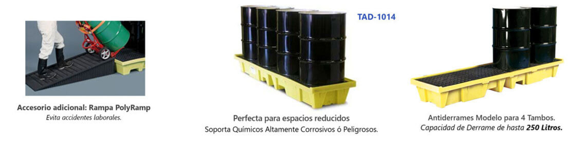 El usar bandejas, plataformas, rampas, o sistemas de gestión de tambores contra derrames, los cuales le proporcionan evitar derrames, accidentes, y tener un mejor manejo del espacio, tenemos a su disposición una serie de modelos que podrán adaptar a sus necesidades y minimizar accidentes.
